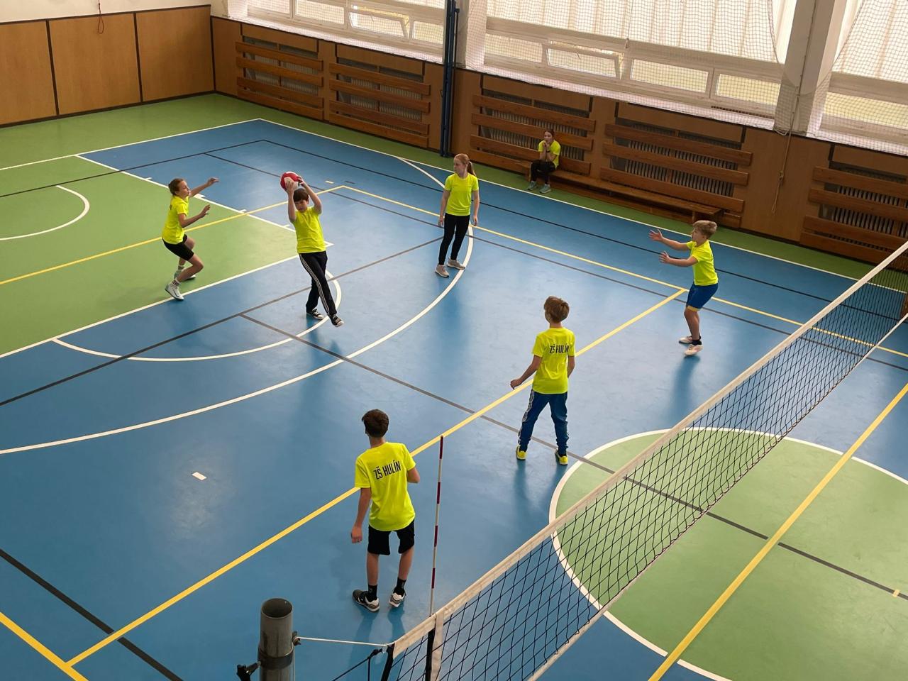 Paní učitelka nám vylosovala skupinu B. Hned od začátku nás čekaly ostré zápasy se Zborovicemi a domácím Slovanem. Byly to nervy až do posledního míče – tvrdé výměny, rychlé reakce, skvělé zákroky a týmová hra. Hulín zabral ve správnou chvíli, udržel se ve hře o postup a šlo se dál!