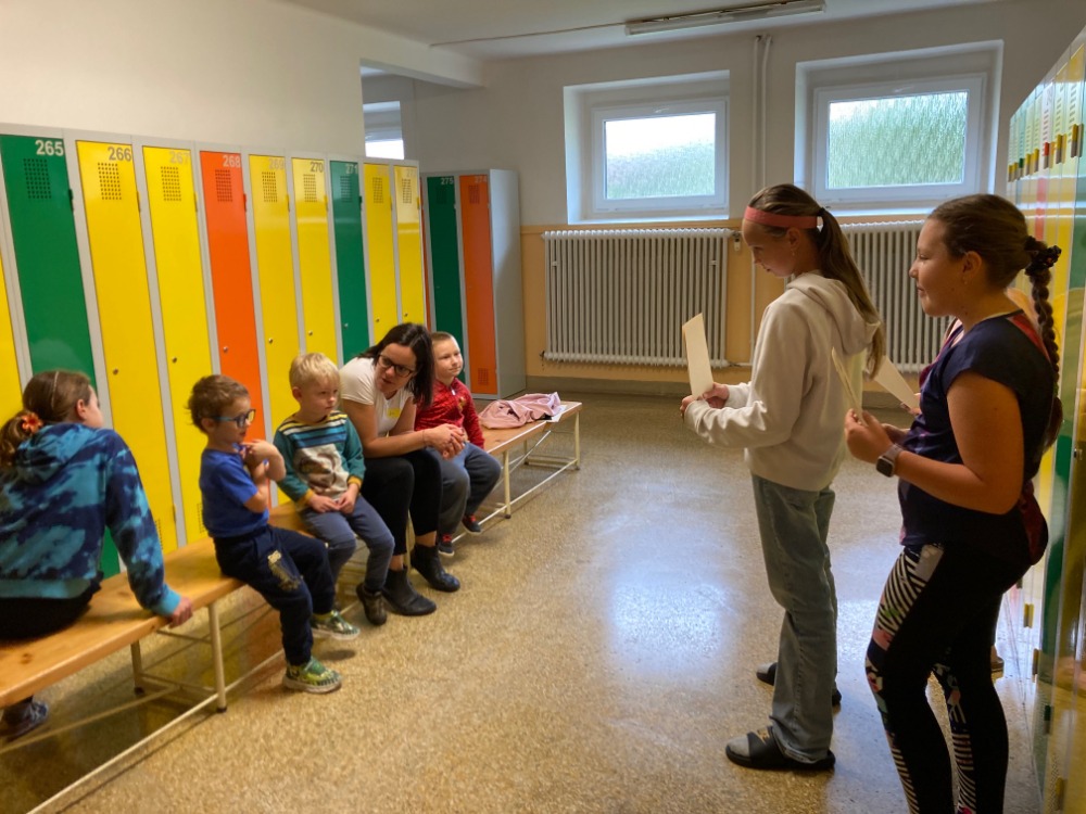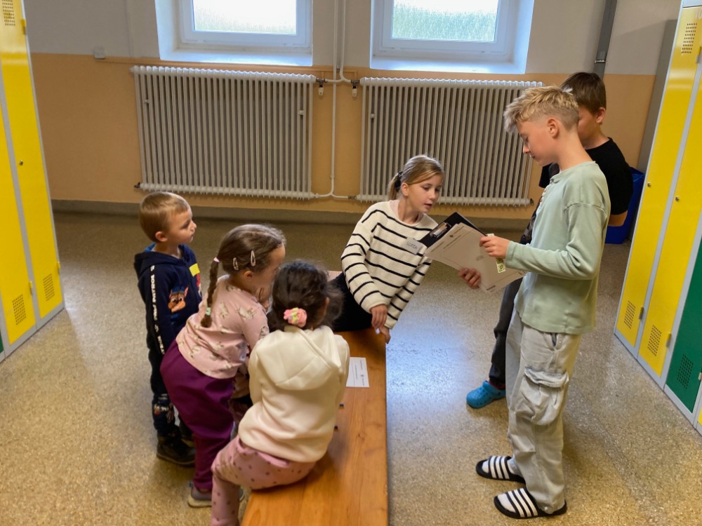 Naše třída 5.A navázala spolupráci s MŠ s oddělením „Myšky“. Vybrali jsme si téma Voda. Připravili jsme si pět stanovišť – živočichy, rostliny, koloběh a skupenství vody, malování vodou a zkoumání, kde v okolí školy vodu máme. Vybrali jsme pět průvodců, kteří se postarali o svou skupinku dětí. Označili je jmenovkami a vodili po stanovištích. Dokonce Adélka přinesla živé sumečky americké.