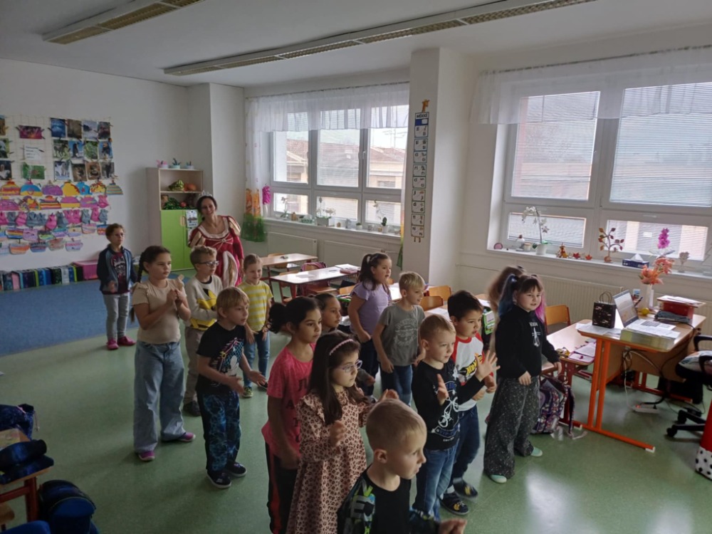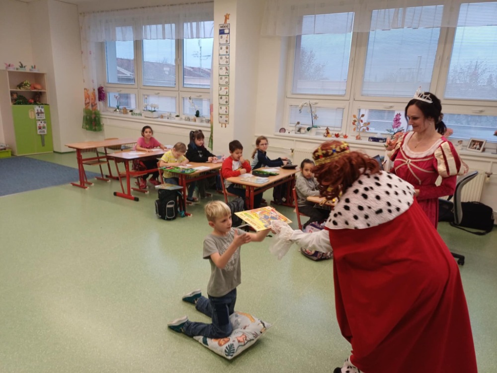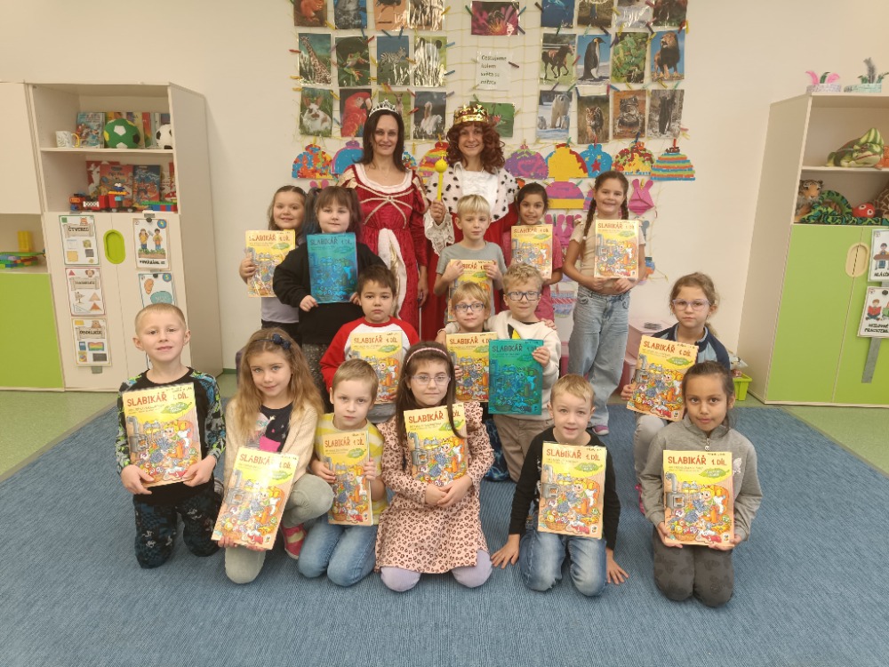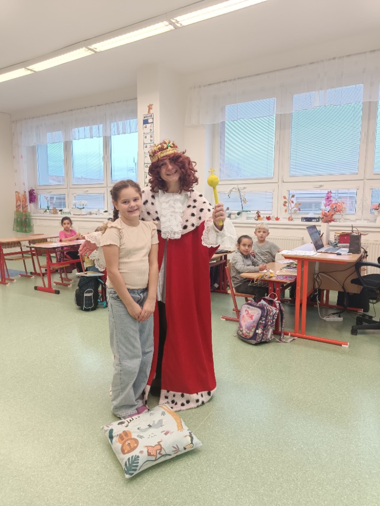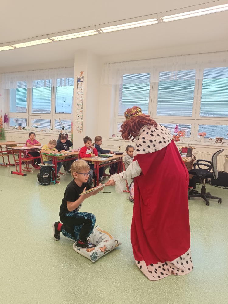 V pátek 21. 11. 2025 byl pro prvňáčky z 1.C velmi důležitý den. Od rána řešili nejrůznější pohádkové úkoly, které jim dával král s královnou. Po splnění všech úkolů přišlo na řadu slavnostní předávání Slabikáře. Děti prokázaly své znalosti přečtením několika slabik nebo slov. V závěru pan král s královnou z Písmenkového království předali dětem jejich první knížku - Slabikář a popřáli jim hodně úspěchů ve čtení. Den jsme si pořádně užili.