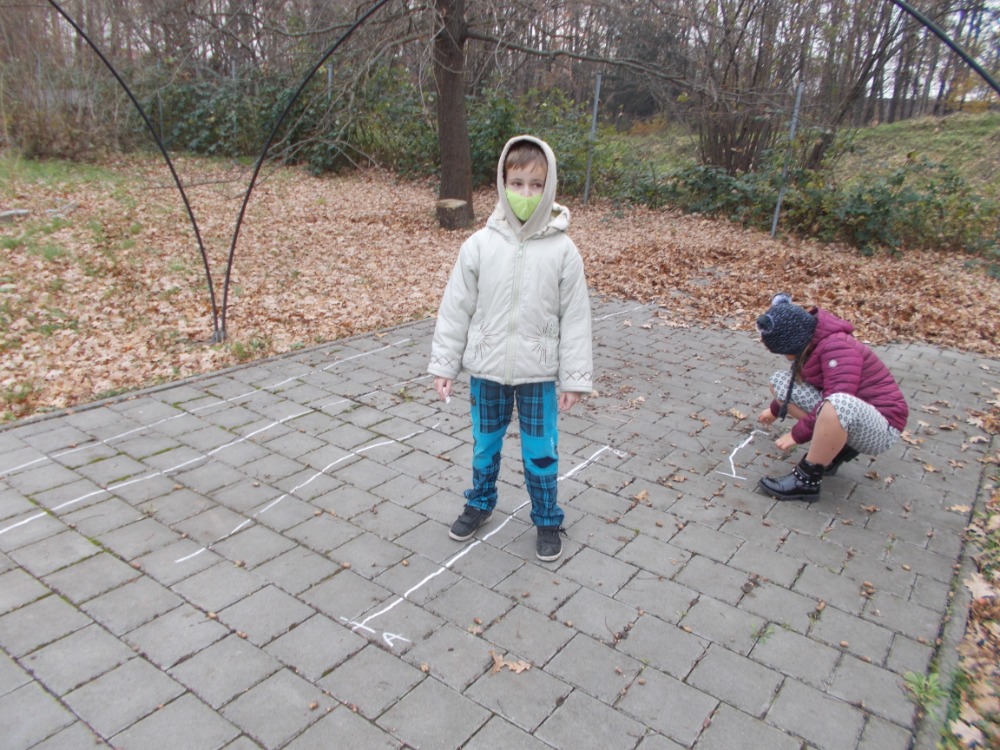 Tam nás matematika teprve bavila. Hledali jsme v přírodě body, rýsovali křídou přímky a úsečky. Používali jsme k tomu i přírodní materiály (kaštany, kamínky, klacíky, větvičky). Bylo to zábavné a poučné.