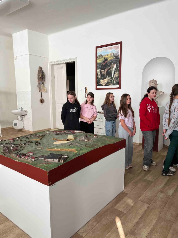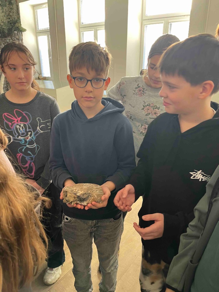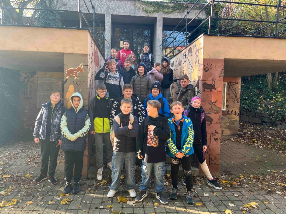 První zastávkou byl Památník lovců mamutů, místo připomínající významnou archeologickou lokalitu z období paleolitu. Po prohlídce památníku následovala návštěva Malého školního muzea, kde si žáci prohlédli sbírku kostí, nálezů a modelů spojených s pravěkým osídlením oblasti. Expozice byla velice zajímavá a interaktivní, takže si děti mohly některé předměty dokonce osahat a vyzkoušet si, jak se s nimi pracovalo. Po prohlídce muzea si žáci ještě prohlédli část naučné stezky v okolí památníku.