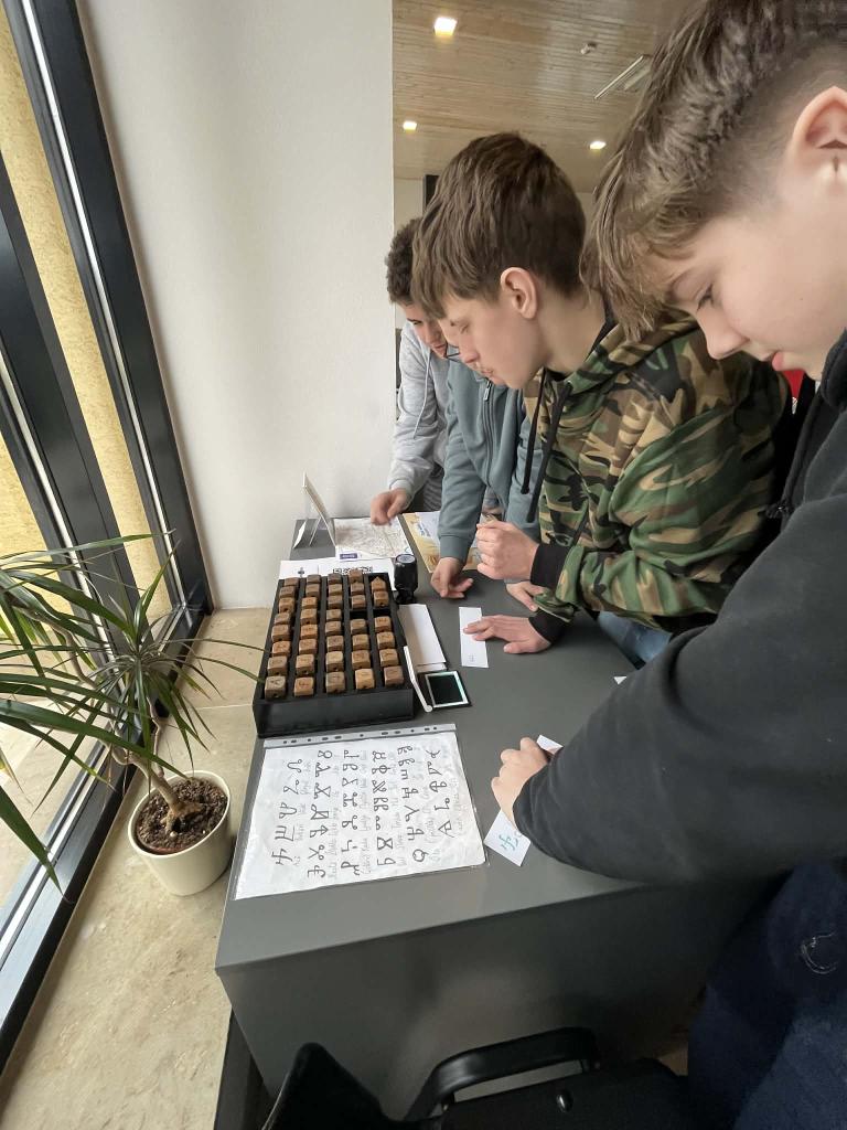 Během prohlídky poslouchali poutavý výklad, prohlédli si archeologické nálezy z 9. století a dozvěděli se mnoho zajímavostí o každodenním životě lidí té doby. Poté si své nové znalosti ověřili vyplňováním pracovních listů a nakonec si vyzkoušeli natisknout svá jména hlaholicí – písmeny, které vytvořil právě Cyril.