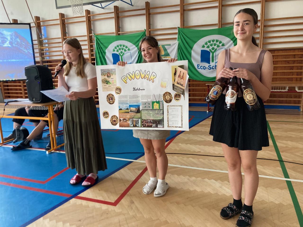 Členové ekotýmu celou akci nejen moderovali, ale i technicky zabezpečili. Seznámili i formou prezentace s proběhlým auditem naší školy, se slavnostním předáváním titulu Ekoškola v Praze a také výletem ekotýmu v Ekoškole ve Zlíně. Slovo si vzala také paní ředitelka.