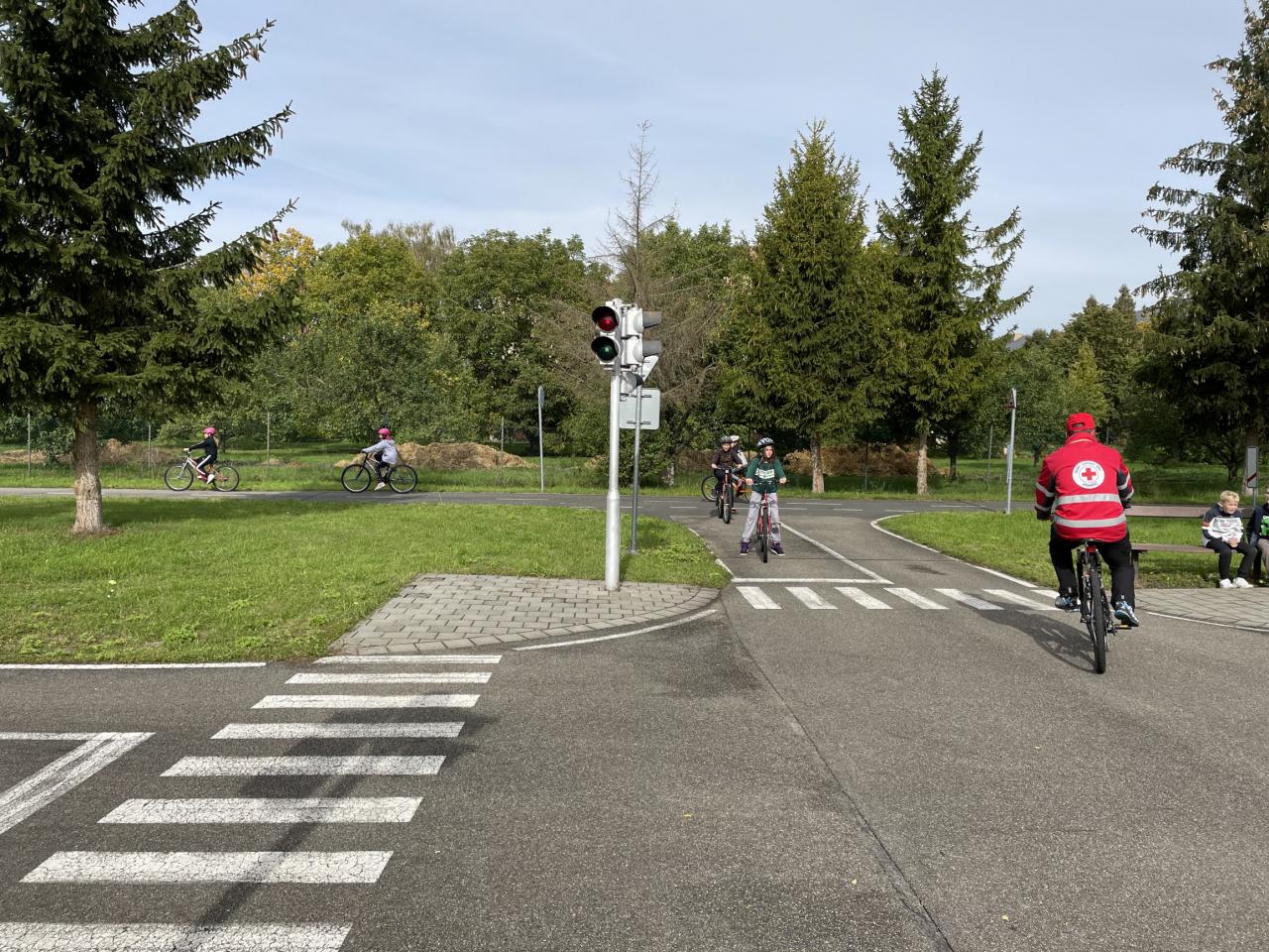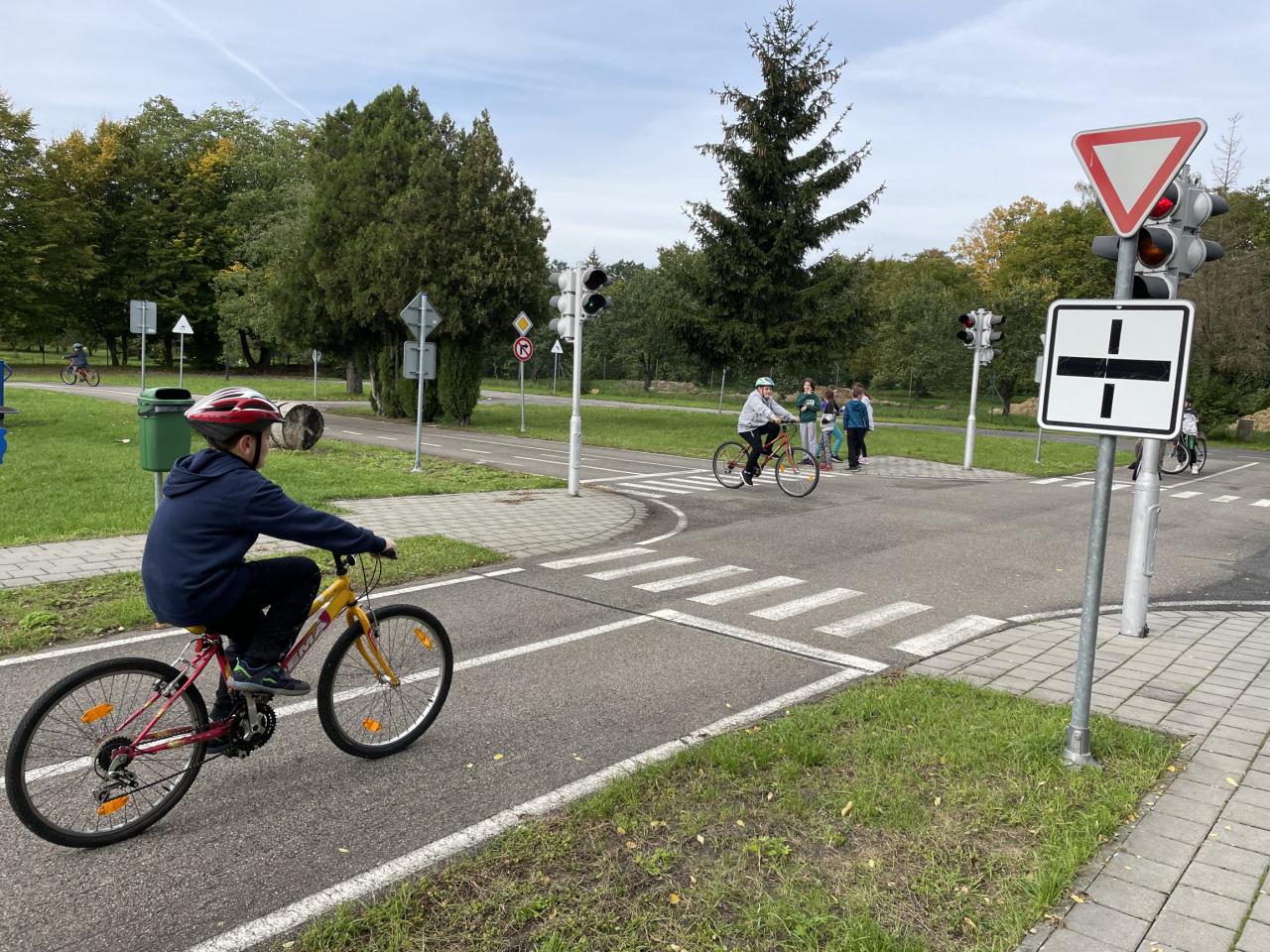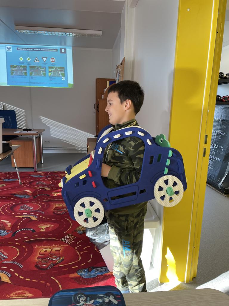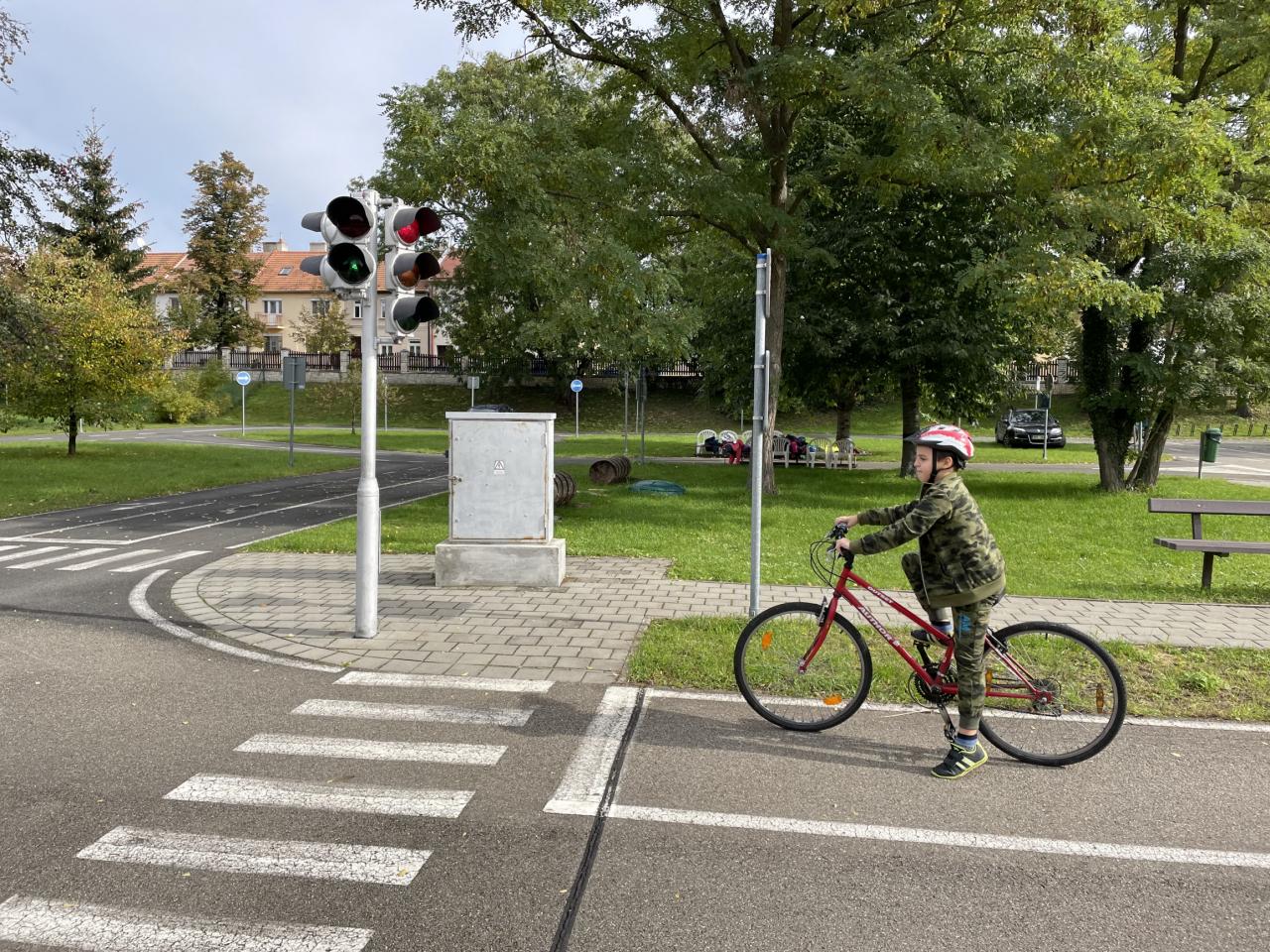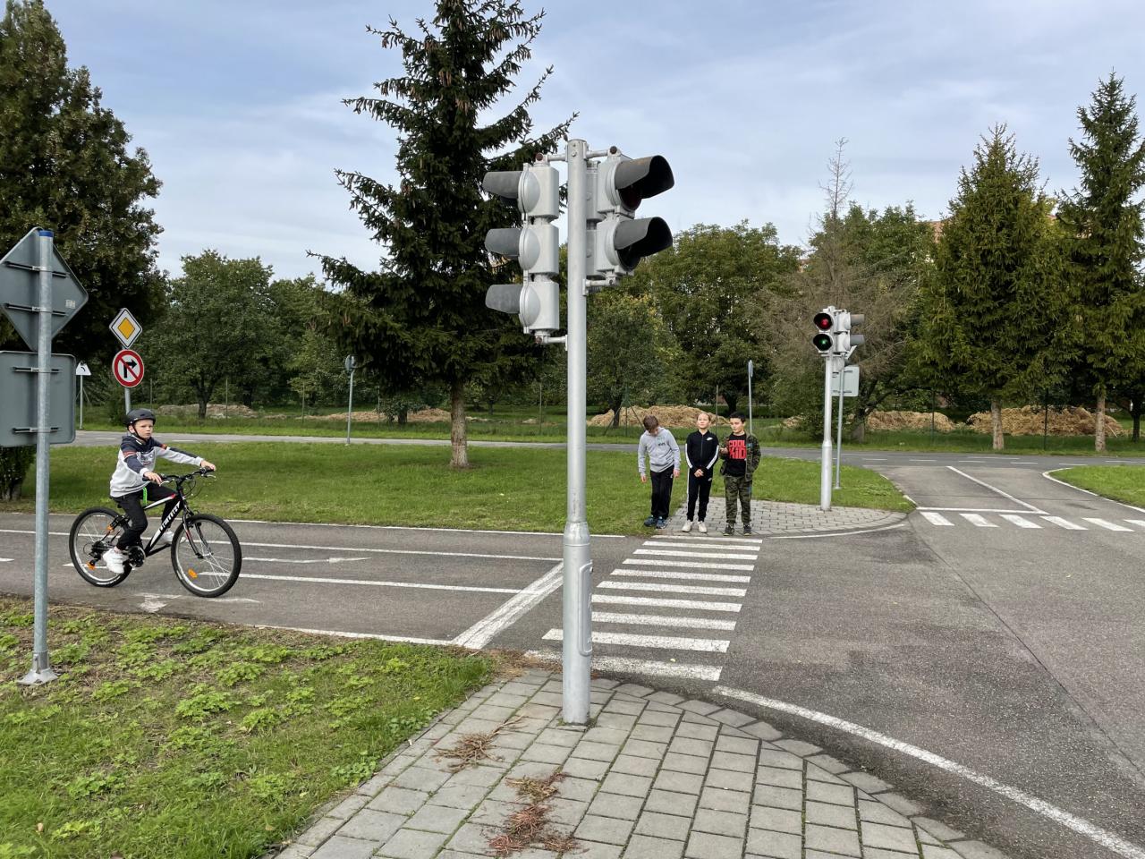 Výuka čtvrťáků na dopravním hřišti.