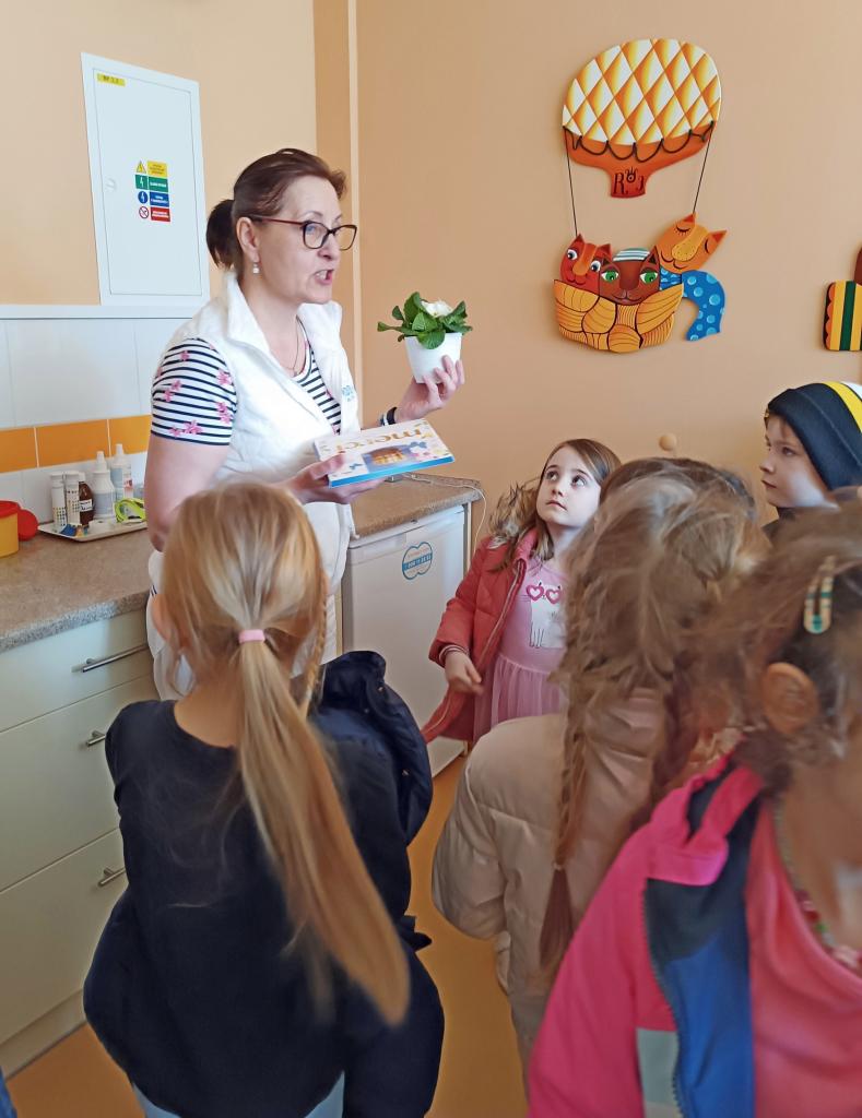 Poutavé povídání lékařky a přátelský úsměv sestřičky všechny malé školáky přesvědčil, že se vůbec nemusí obávat návštěvy u lékaře. V „kouzelné ledničce“ paní doktorka ukázala všem zvědavým školákům očkování, vakcíny a léky….prostě vše pro zdraví miminka, žáka, dorostence. Prvňáčci se rozloučili poděkováním a kytičkou s malou pozorností, kterou s láskou předali p. Mudr. Syptákové i sestřičce.