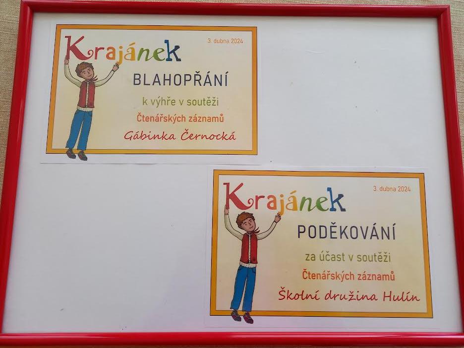 Na začátku měsíce jsme navštívili městskou knihovnu. Paní knihovnice Erika Koukalová si pro nás připravila zajímavou besedu o knížkách. A již podruhé jsme se zapojili do literární soutěže ,,Čteme dětské knihy.“ Naším úkolem bylo vytvořit záznamy o knihách, kterou jsme si přečetli v družině a odpovědět na různé otázky. Čím vtipnější či něčím ojedinělá odpověď, tím je větší šance na výhru. Po slosování všech účastníků jsme se dozvěděli, že 1. cena putuje do naší školní družiny. Máme z toho velkou radost a odměnou je pro nás nejen diplom, ale také 2 knihy od vydavatelství Portál, které si v družině rádi přečteme.